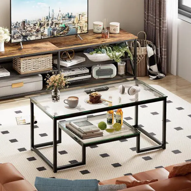WIDELY USEDThe size of the rectangular glass coffee table is 39.4 x 18.9 x 17.7 inches, which is not only stylish, but would fit in any decor. And it can meet daily storage needs and keep the space tidy.