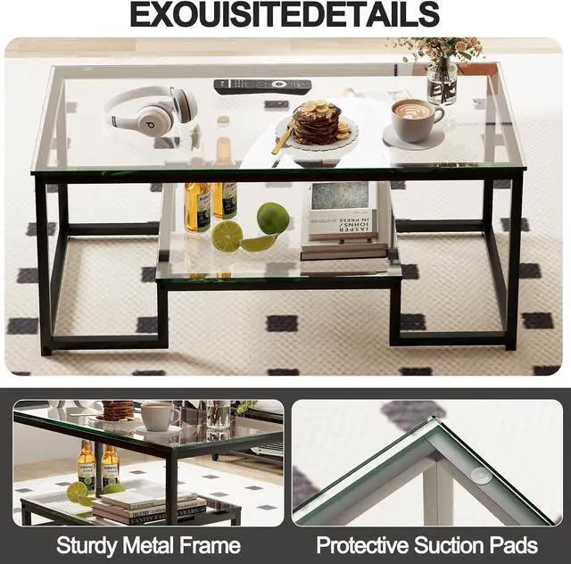 HIGH QUALITY MATERIALSThe coffee table is made of high-quality tempered glass, with a smooth and waterproof surface, high temperature resistance, and easy cleaning. The table legs adopt multi-layer spray painting technology, with uniform color and smooth touch, and the paint surface is not easy to peel off.