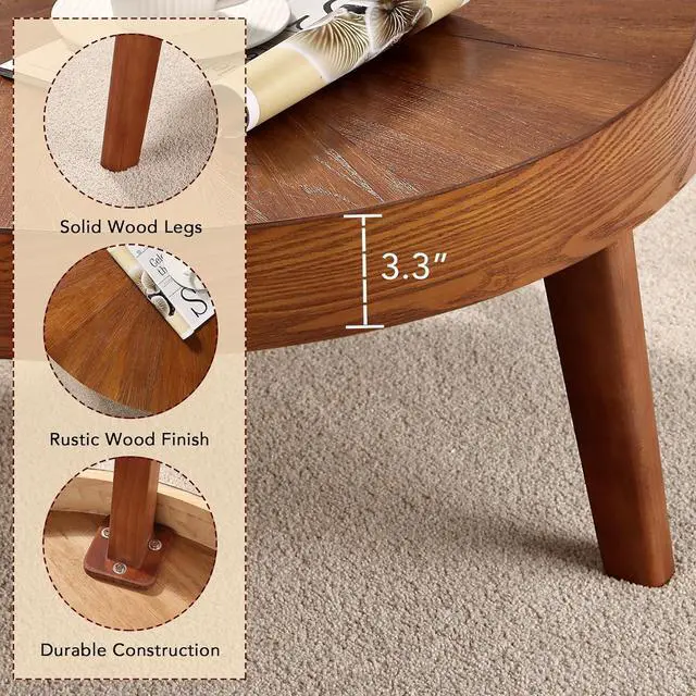 Farmhouse style: Add a touch of rustic charm to your living room with our farmhouse-style Round Coffee Table. The natural wood tabletop features a round umbrella pattern, making it the centerpiece of your space.