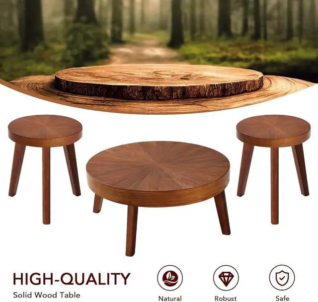Durable construction for long-lasting use: Made from sturdy MDF and wood veneers, this Living Room Coffee Table Set is sure to be a lasting favorite, and its solid wood legs provide added stability. With thickened wood and tabletop thickness up to 4" / 3.2 ", these wood coffee tables ensure double stability.