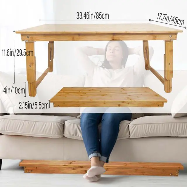 Floor Table Tray with Folding Legs Adjustable Low Coffee Table for Sitting on Floor Bamboo,Fully Assembled,33.5x17.7in