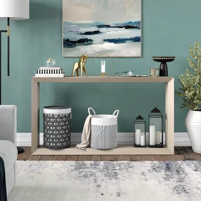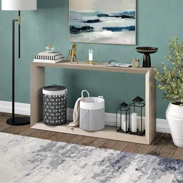 A modern contemporary design for your entryway, living room, den, and more. Finished in wood-look alder white. Table is made of high-quality and durable MDF materials. Tabletop features a weight capacity of 60 lbs. Features easy assembly.