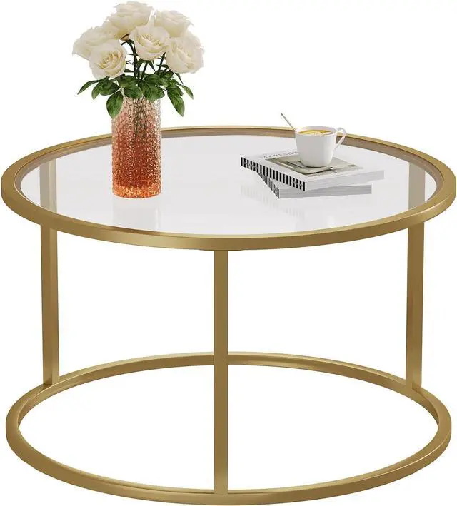[Minimalism] - Affordable luxury tempered clear glass with gold round matte metal frame without extra decoration, minimalist lines will never go out of style.