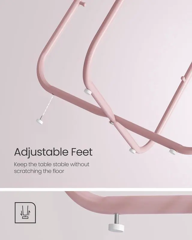 [Sturdy and Stable] The sturdy particleboard tabletop is fixed to the frame without wobbling. The one-piece U-shaped steel legs offer solid support. The adjustable feet increase the stability and don' t scratch the floor