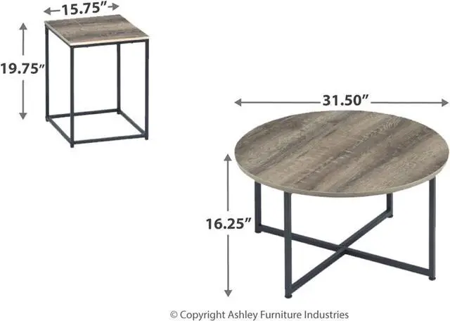 SET OF 3: Center coffee table measures 31.5 " W x 31.5 " D x 16.25 " H and the 2 end tables each measure 15.75 " W x 15.75 " D x 19.75 " H