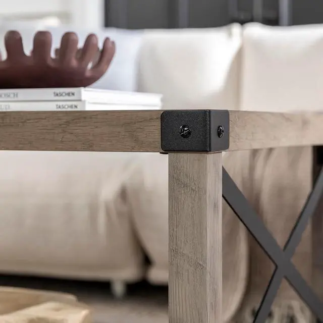 Showcasing metal x-sides and metal brackets on corners for a stylish accent