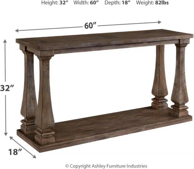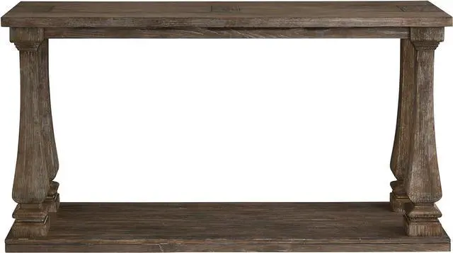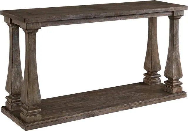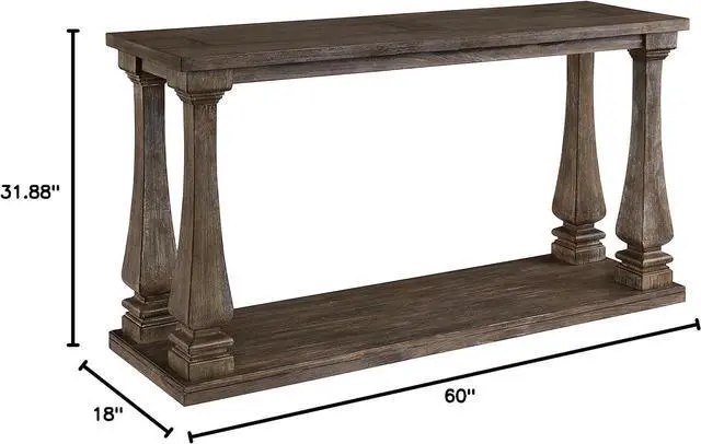 WEATHERED FINISH: Richly crafted in a distressed weathered gray finish, this table' s baluster legs and broad lower shelf provide storage and style all in onewhat a stunner in a hall or foyer