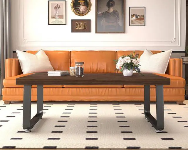 High-Quality Materials: Crafted from premium engineered wood materials, the combination of MDF Board and metal legs ensures a sturdy and durable desktop, weight capacity can up to 300lbs. With four Levelers design allows the rectangular living room coffee table to maintain balance even on uneven surfaces, effectively preventing floor wear. This simple rustic tea coffee table blends durability and contemporary style, making it perfect for your living room