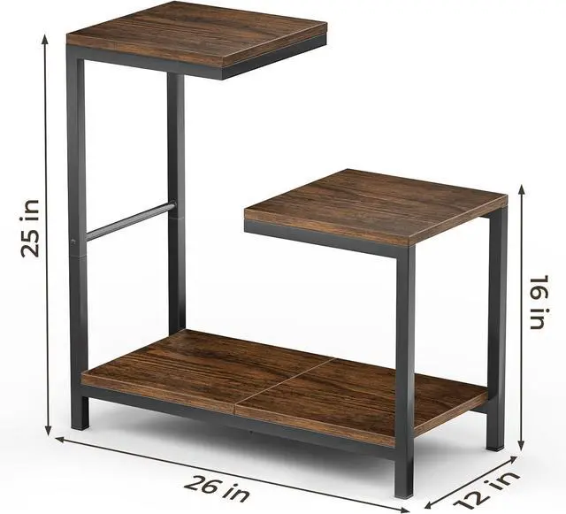 Fit Small SpacesThis end table is 26" L x 12" W x 25" H, while serving as a catchall with 3 storage tiers, which is perfect for tight spaces, such as living rooms, bedrooms, hallways, etc.