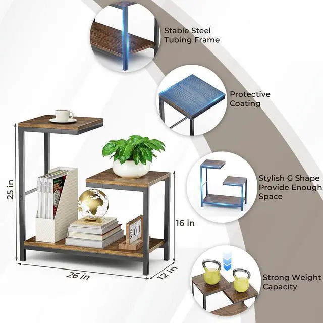 3-tier Shelves Provide Big CapacityThis small end table comes with 3 tier open shelves that offers big capacity to storage. It keeps your favorite books, magazines, and home decoration within reach.