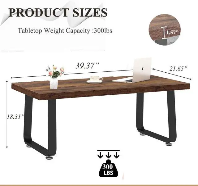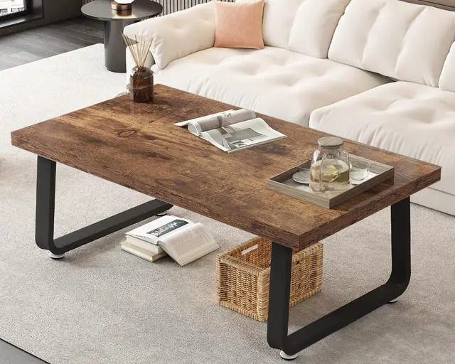 High-Quality Materials: Crafted from premium engineered materials, the combination of MDF Board and metal legs ensures a sturdy and durable desktop, weight capacity can up to 300lbs. With four Levelers design allows the rectangular living room coffee table to maintain balance even on uneven surfaces, effectively preventing floor wear. This simple rustic tea coffee table blends durability and contemporary style, making it perfect for your living room.