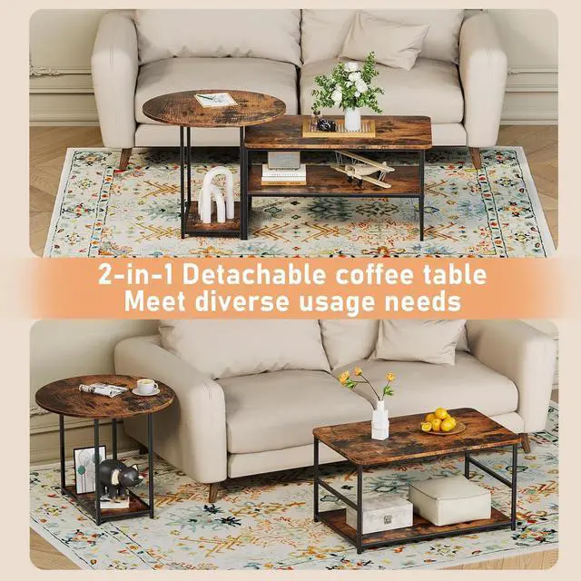 2 IN1 Detachable Coffee Table SetThis modern coffee table set is due to its detachable design. This will fit any small space or enhance a large living room. Your options are only limited by your imagination. Flexibility by design!