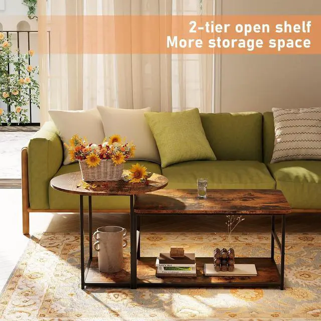 Coffee Table with StorageThe coffee table for living room has 2-tier open shelves that offer plenty of storage space for you need to be neat and orderly in your living room.