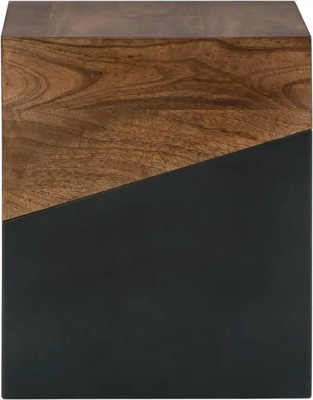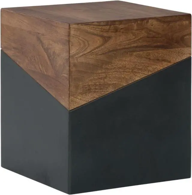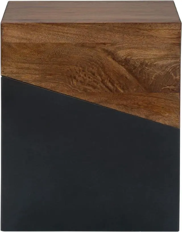 BEAUTIFULLY CRAFTED: Constructed of solid wood and engineered wood with a two-tone light brown and dark gray finish offering a unique conversation piece as a bedside table or living room decor