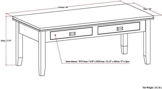 DIMENSIONS: 22" D x 46" W x 17.7 " H