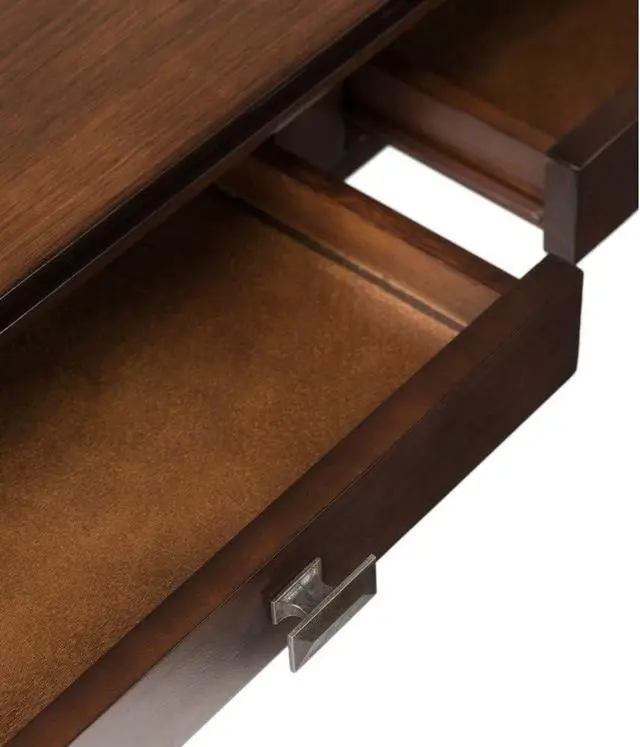 Features 2 functional drawers with metal drawer glides on one side for convenient storage and 2 false drawer fronts on the opposite side