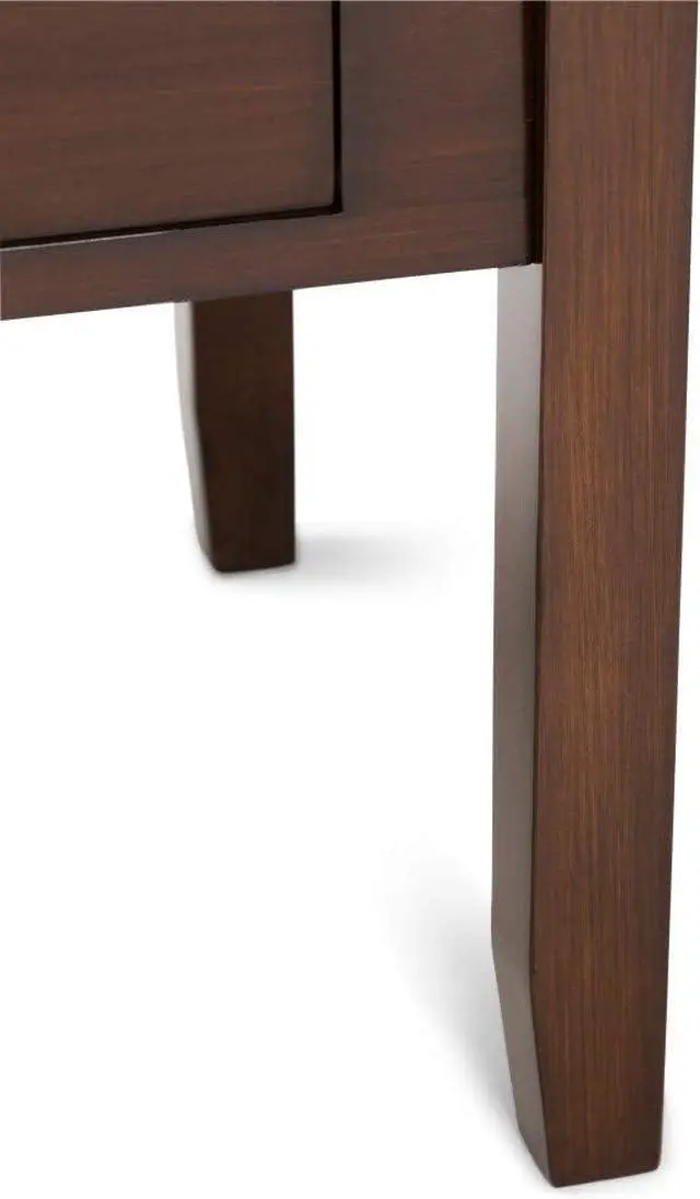 Transitional design includes clean angle edged table top, square, slightly tapered legs and rectangular Antique Bronze knobs