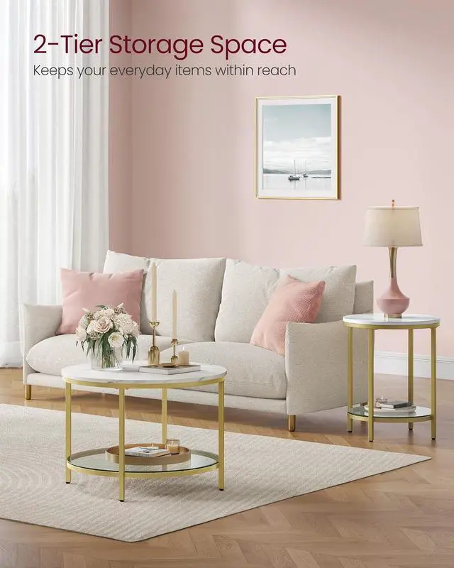 [What You Get] A modern coffee table that will always be there for you with a faux marble top and tempered glass storage shelf underneath, as well as intuitive instructions for easy assembly