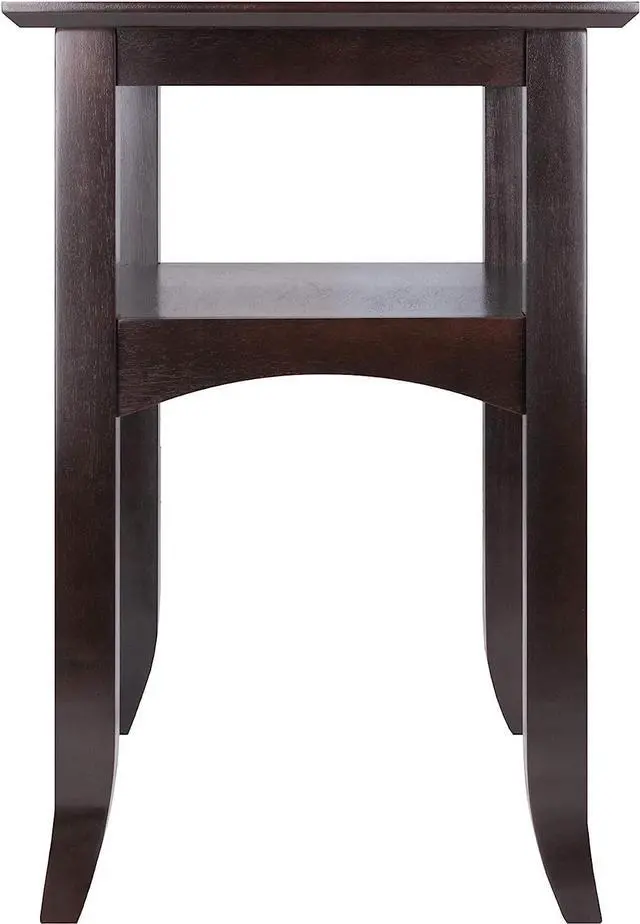The Camden End Table has time-tested traditional styling made a little more special with slightly flared legs and curved aprons that border the lower shelf. Constructed of Solid Wood in a rich Coffee finish, this table Is an effortless fit for your home, either in the bedroom or living room, or anywhere you need a side table.