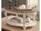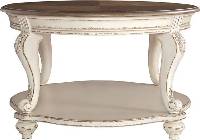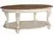 OVAL COFFEE TABLE: Cottage lovers, rejoicethis table serves up style with a chipped white finish and classic cabriole legs that exude so much elegance. Its shapely charm takes center stage