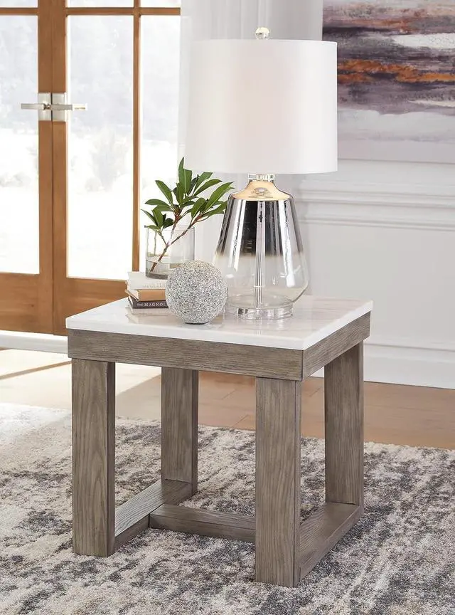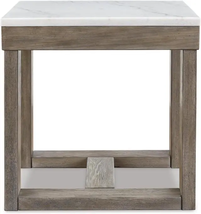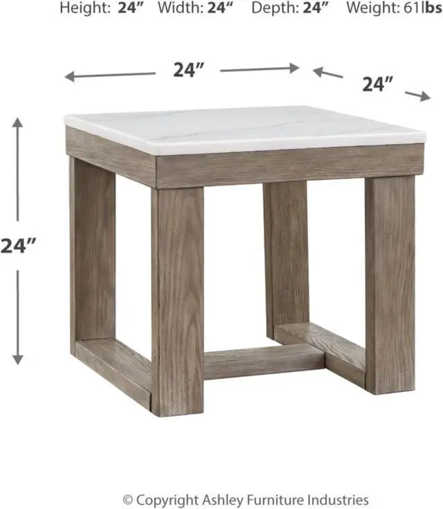 END TABLE: This square table is simple in design but big on style. Adding to its beauty, the marble top' s color variations, fissures, mineral deposits & veining are naturally formed characteristics