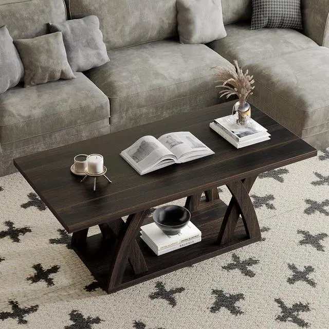 Coffee TableThis rectangular coffee table for living room is very simple and generous. The coordinated colors and X-shaped base design highlight its high quality and fashion. Suitable for different living styles, it can be used as a modern accent or complement traditional style furniture. Its size and double-layer storage design are just right for families with different space needs. It is a beautiful, practical and stylish piece of furniture.