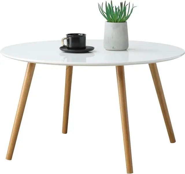 Part of the Oslo Collection from Convenience Concepts Features a mid-century modern style with a minimalist design Easy assembly requiring only 2 step Crafted from Solid Wood and MDF (L) 31.50 in. x (W) 31.50 in. x (H) 18.25 in.