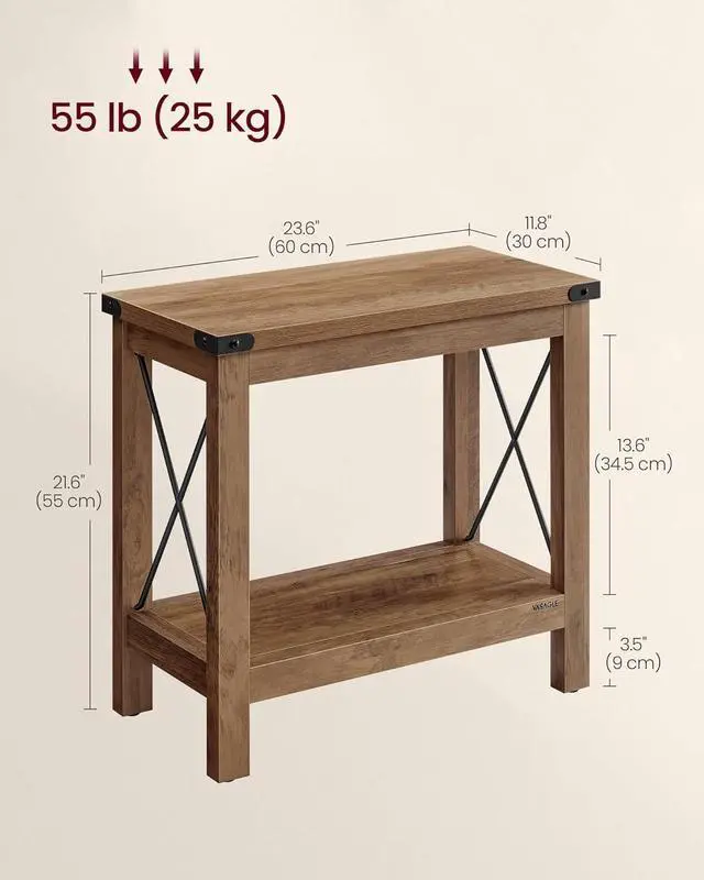 COMPACT & VERSATILEMeasuring 11.8 " D x 23.6 " W x 21.6 " H, this side table for small spaces fits snugly next to your accent chair or sofa, and can also serve as a drinks table, nightstand, or plant stand