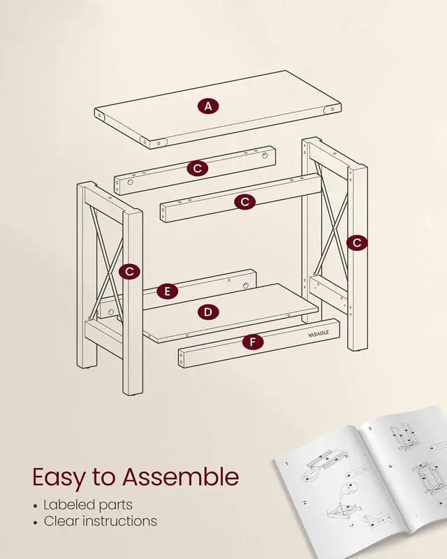 QUICK ASSEMBLYFollow the clear instructions to assemble the labeled parts, and you' ll have this bedside table ready in just 6 steps, making setup fast and hassle-free
