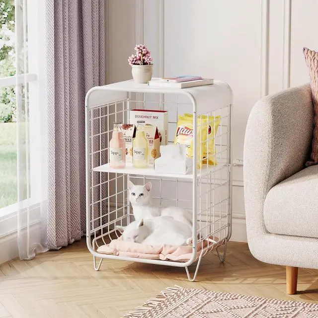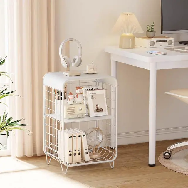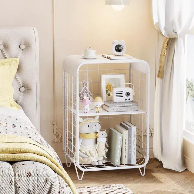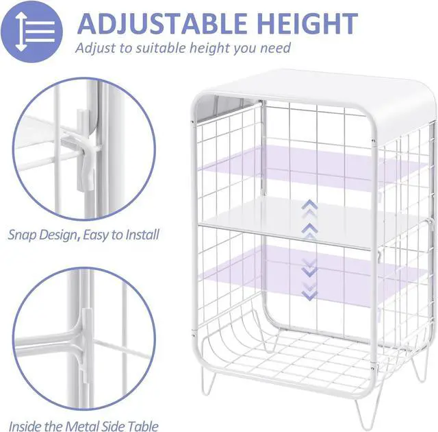 MULTI-FUNCTIONAL: This unique side tables can be used as living room metal side table, end table with storage, cute side table, storage table, modern end table, girls nightstand. The top shelf provides convenient space for placing laptop, books, magazines, coffee, fruits, or other items. Cute side table with storage can be placed in your bedroom, living room or other corner in your home.