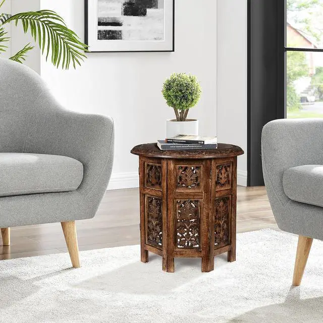 EASY ASSEMBLY: Octagonal side table comes in a flat package box containing 1 round table top and 1 octangle base. The assembly is very easy and no need for any special tool to use.