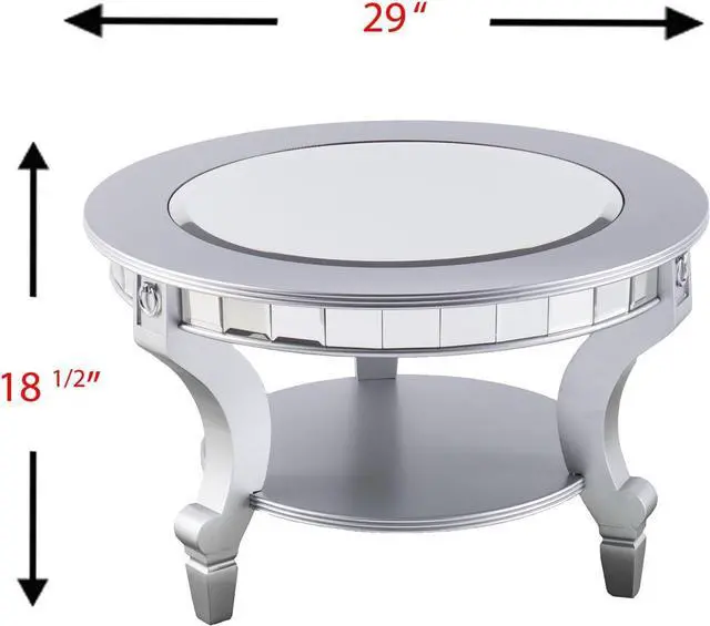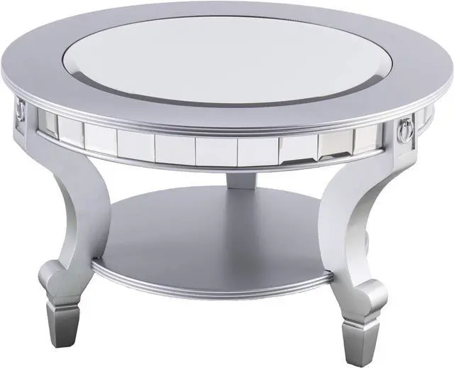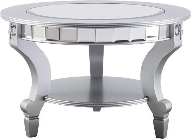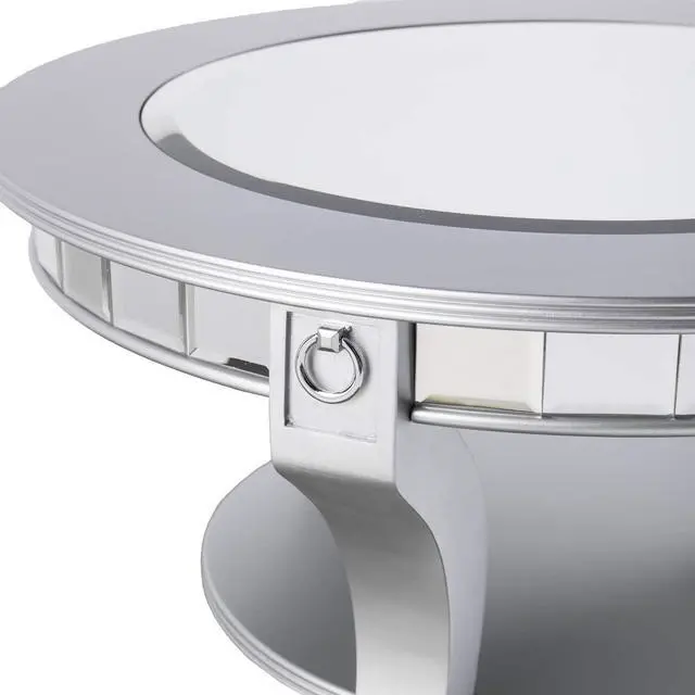 Sophisticated mirrored coffee table; Wide-beveled inset mirrored tabletop