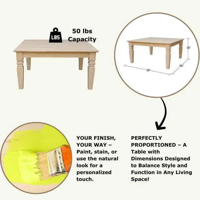 [CUSTOMIZABLE FINISH] Personalize this solid parawood coffee table with your favorite paint or stain for a unique touch to your living space.