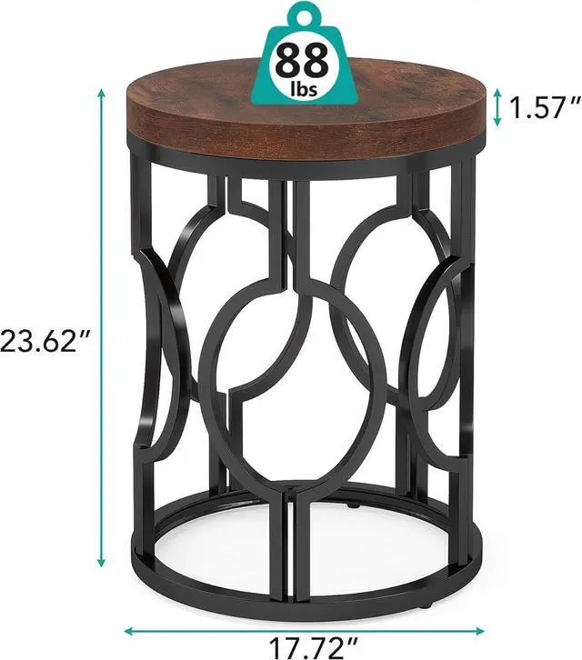Well-Built and Well-Balanced The living room end tables' s tabletop is made of premium MDF board with a rich brown finish, providing a natural appeal. The robust black metal frame radiates strength and stability, enhance the whole bearing capacity that can hold up to 120 lb.