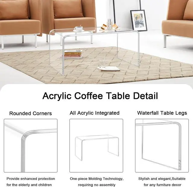 Easy Maintenance - This acrylic coffee table is super easy to clean up. Just gently wipe the dirt off with a cloth. Surface acrylics stain keeps your table dry. Smooth rounded edges ensures the safety for daily use.