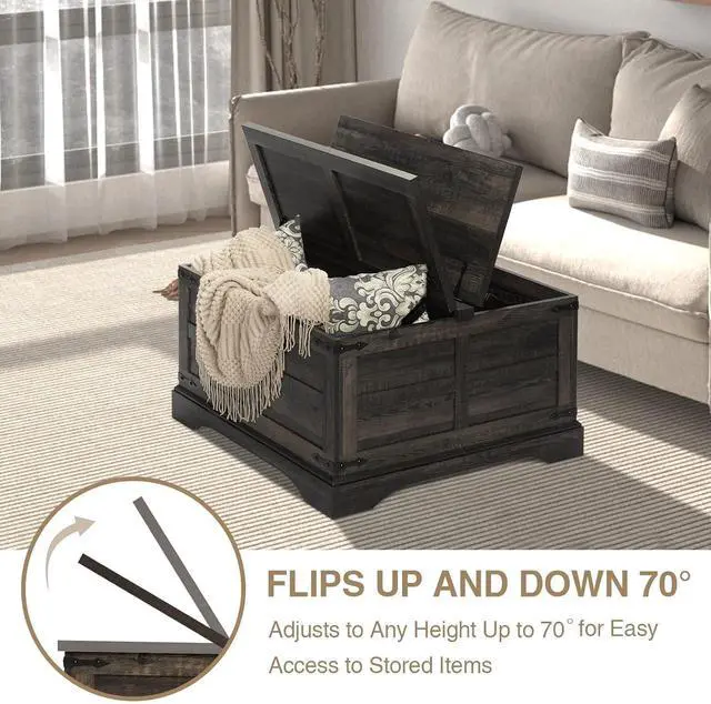 EXTRA LARGE HIDDEN STORAGE SPACEBoth sides of the Hidden storage coffee table top can be lifted up separately, offering an expansive storage area. This small coffee table is perfect for storing pillows, blankets, magazines, remotes, and other living room essentials, all while effectively keeping dust out