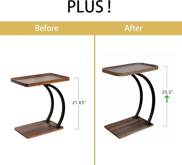 {Design details}: The top square edge of the coffee table has a concave design, placed items are not easy to fall, even if the liquid drinks poured will not dirty the ground. The lower plane design is convenient for placing books and other items to meet different needs. {High quality material, wood} The coffee table has two layers of square panels, with a metal frame link in the middle. The material of the panel has been specially treated to make it safe, environment-friendly, odorless, resistant to high temperature, waterproof and easy to clean. {Easy to assemble} The design is simple and stable, coming with detailed instructions and is very easy to assemble in a few simple steps. {Dimension and save space} W 20.5 *D 13.38 *H 25.5IN Promise Seriously to customers: the material of tray has no plastics!