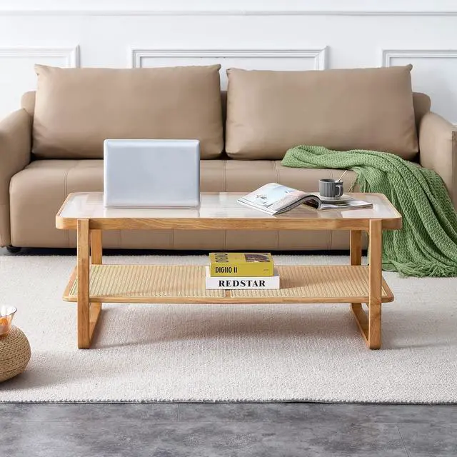High Quality: Rectangle coffee table upper layer is made of high quality tempered glass, strong and durable, the lower layer is beautiful and generous with PE imitation rattan mesh, the frame is made of stronger solid wood table legs to enhance the weight-bearing capacity and keep stable without any swaying