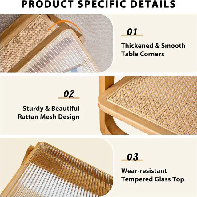 Morden Design: Our glass top coffee table combines mid-century modern and bohemian styles features two types of storage tables, a glass top and a faux rattan mesh. The glass table top is heat-resistant, hazy and beautiful, and can hold some decorative items and tea sets. Imitation rattan mesh pattern is beautiful and generous, a good choice for placing books or storage baskets