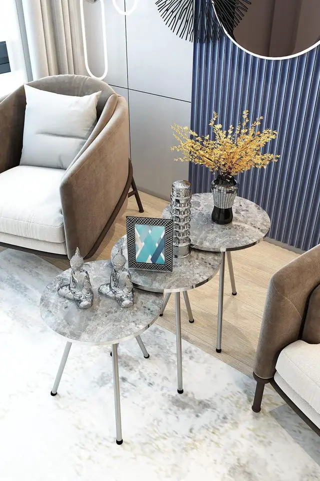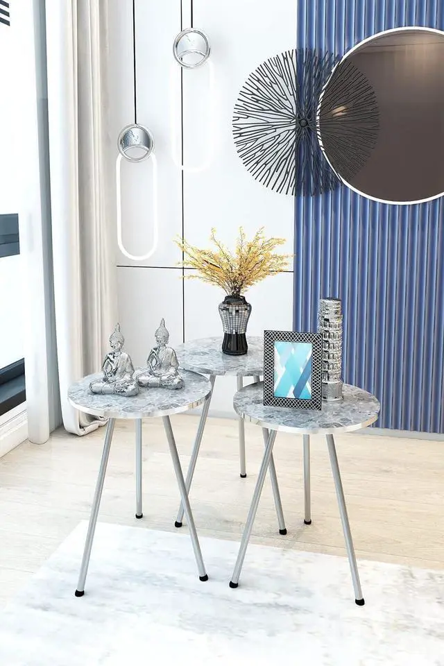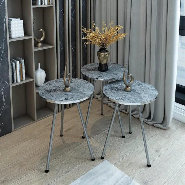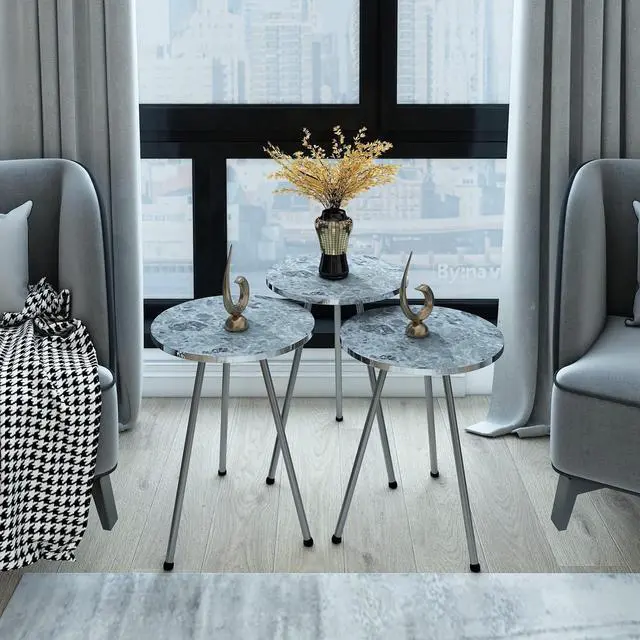 3. Fits in your space fits on your budget. Package includes 3 tables. Space saving tables can be separate or stack together. Round design makes them ideal size for small spaces. Easy to move and carry. Supports up to 200lb.
