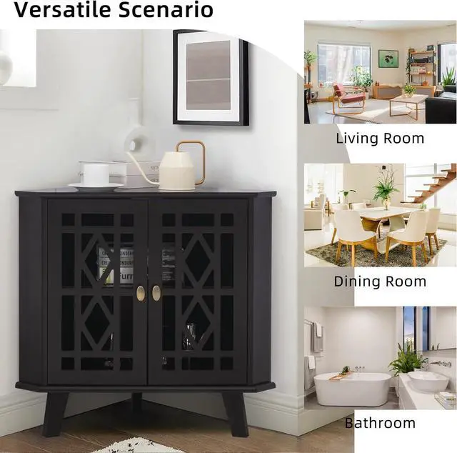 Versatile UseOur corner cabinet can perform multiple functions in multiple occasions. It can not only be used as a storage organizer in the living room and dining room, but also can be put in the bathroom to store personal items such as toilet paper, shampoo and hair dryer.