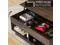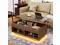 The coffee table features an extended lift top, built with gas struts for effortless lifting and lowering of the table top. You can adjust it from 15.75 " to 21.65 " depending on your needs. The coffee table also offers a vast hidden compartment and 2 open shelves for easy storage of clutter