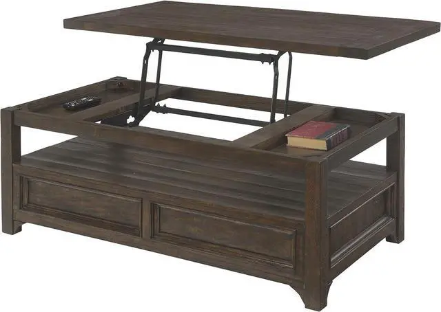 Hinged lift-top provides versatile configurations and reveals extra storage underneath