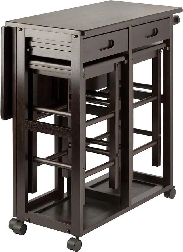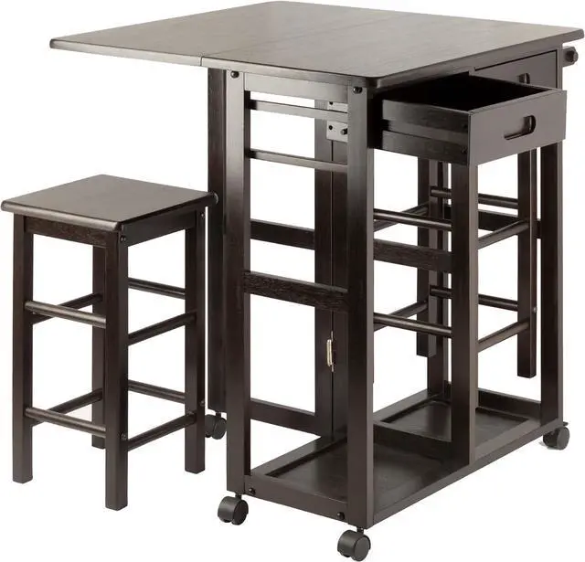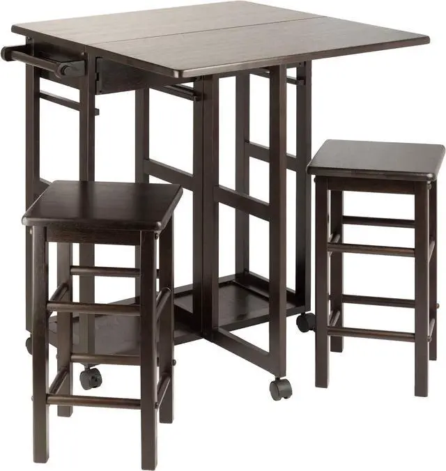 Drop Leaf to expand table size | Stools tuck neatly under the table