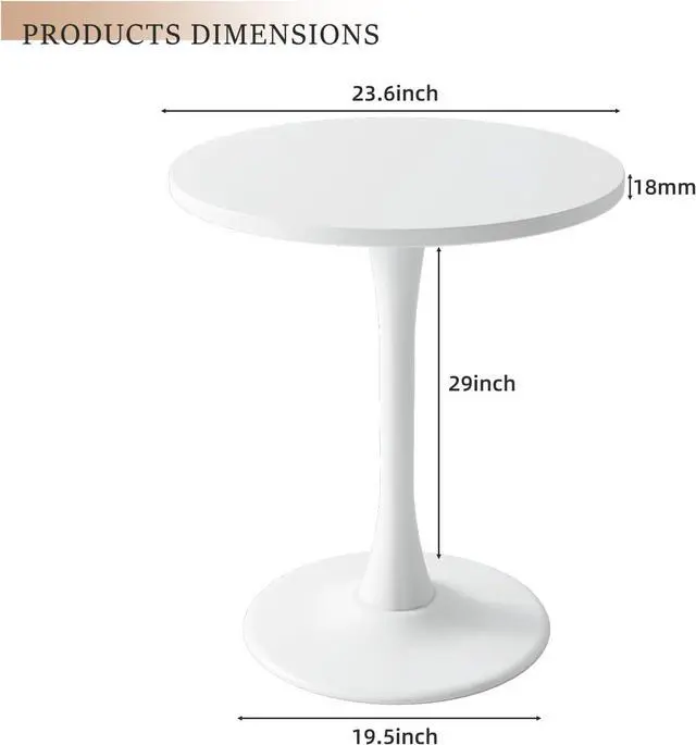 StyleThe round white dining table is designed in a modernist mid-centry style, showcasing its rugged durability and enhanced aesthetic appeal with the tulip design.