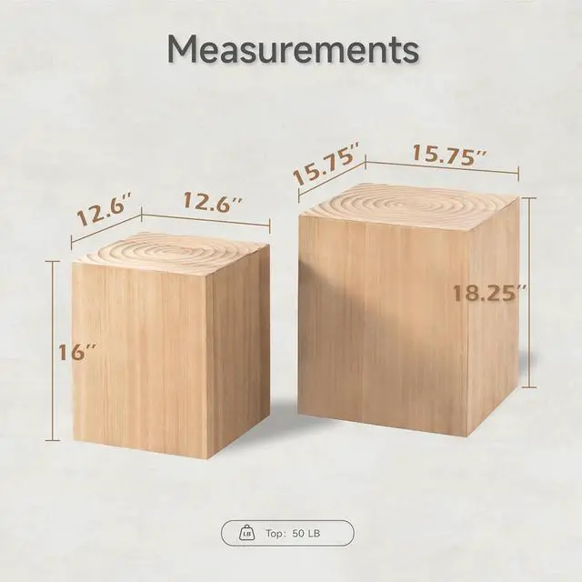 MEASUREMENTS: Tall table 15.75L x 15.75W x 18.25H. Short table 12.6L x 12.6W x 16H