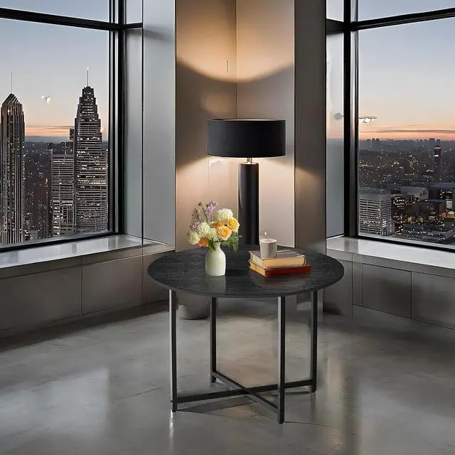 Sturdy Wood & Metal Structure Premium wooden board and sturdy steel frame makes the round coffee table stable so that it won' t wobble every time you pick up your coffee cup. Besides, the metal table legs and 1.5 cm thick wood top make the coffee table strong enough to hold 100 lbs. The protective coating makes the coffee tables for living room easy to clean. Only need a piece of paper towel