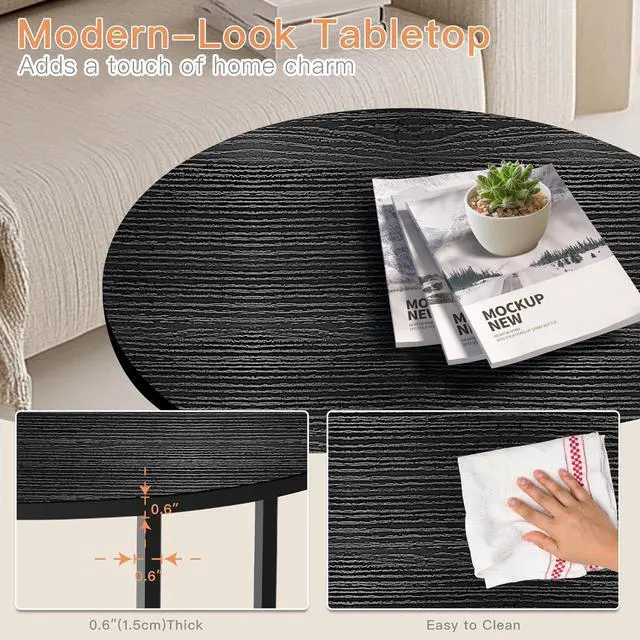 Compact Size & Practical 23.6 " D x 17.7 " H round coffee table can be used as a low table, floor table, end table, shorter sofa table, etc. It can match any style of living room, reception room, farmhouse room, single apartments, small spaces. The coffee table can also be placed on your balcony, allowing you to leisurely enjoy the outdoors for afternoon tea or a laptop for work