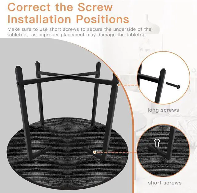 Easy Assembly Easy to install within 15 mins. The round coffee table comes with a clear instruction manual, all accessories needed and tools. If you have any problem, feel free to contact us. Our after-sale service team will response within 24 hours