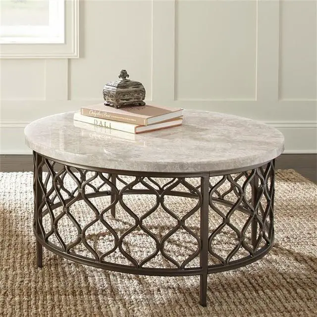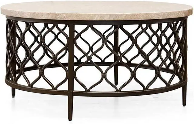 BOWERY HILL White Stone Top with Bronze Metal Base Coffee Table